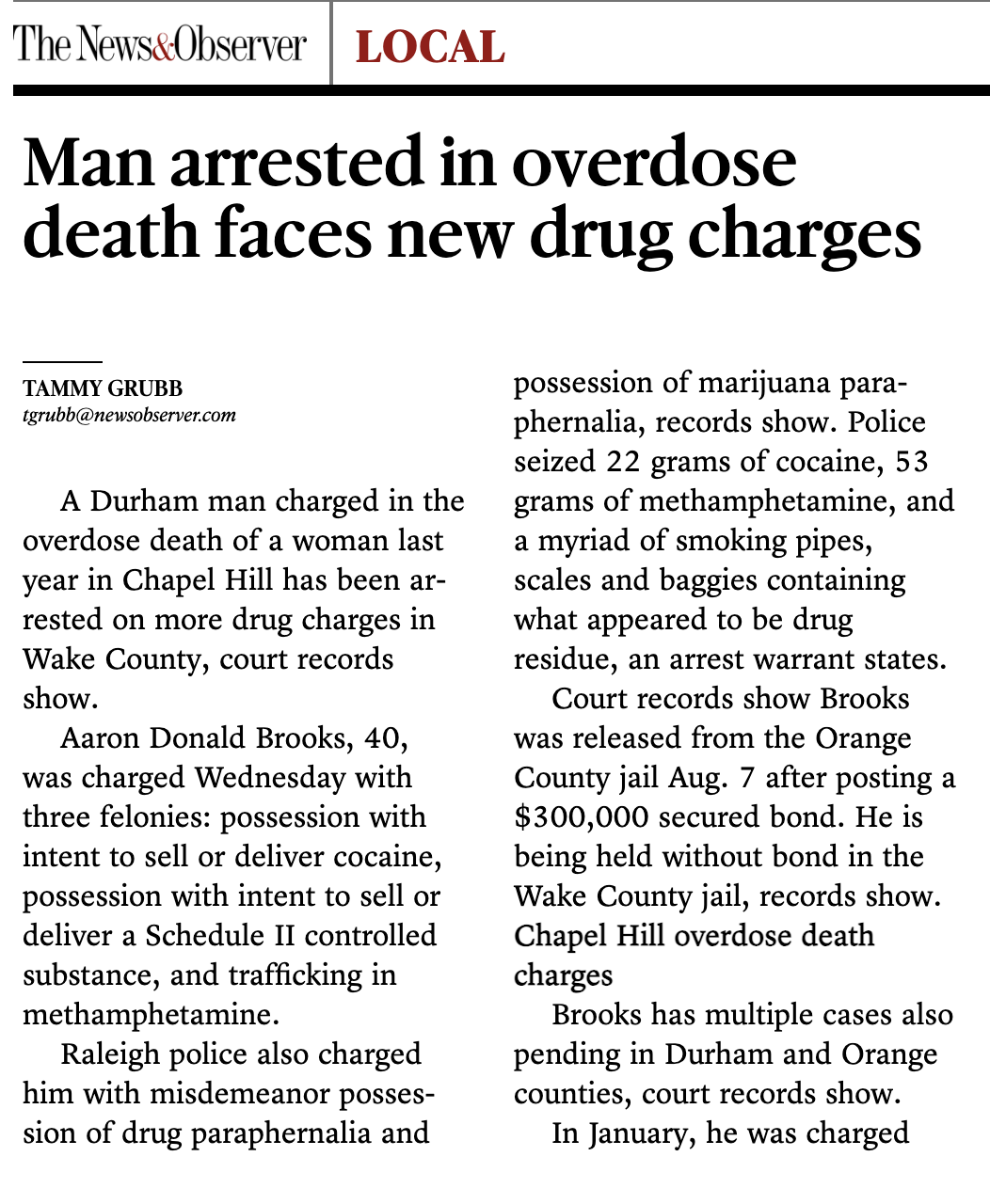 Man arrested in overdose death faces new charges Read the original article on the Raleigh News & Observer website. Related